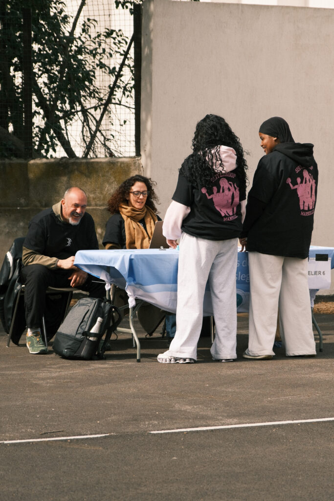 Balle en Main tient à remercier chaleureusement l’ensemble des acteur-ices mobilisé-es pour cette première édition : la FSGT et la ville de Marseille pour leur soutien, les associations présentes – Schebba, Femmes de Sport et Règles Élémentaires – ainsi que les centres sociaux pour leur relais précieux auprès des jeunes. Et toustes les bénévoles. Un grand merci également à Marie-Claude professeure du Lycée La Calade venue accompagner et soutenir les participantes aux côtés de ses élèves.