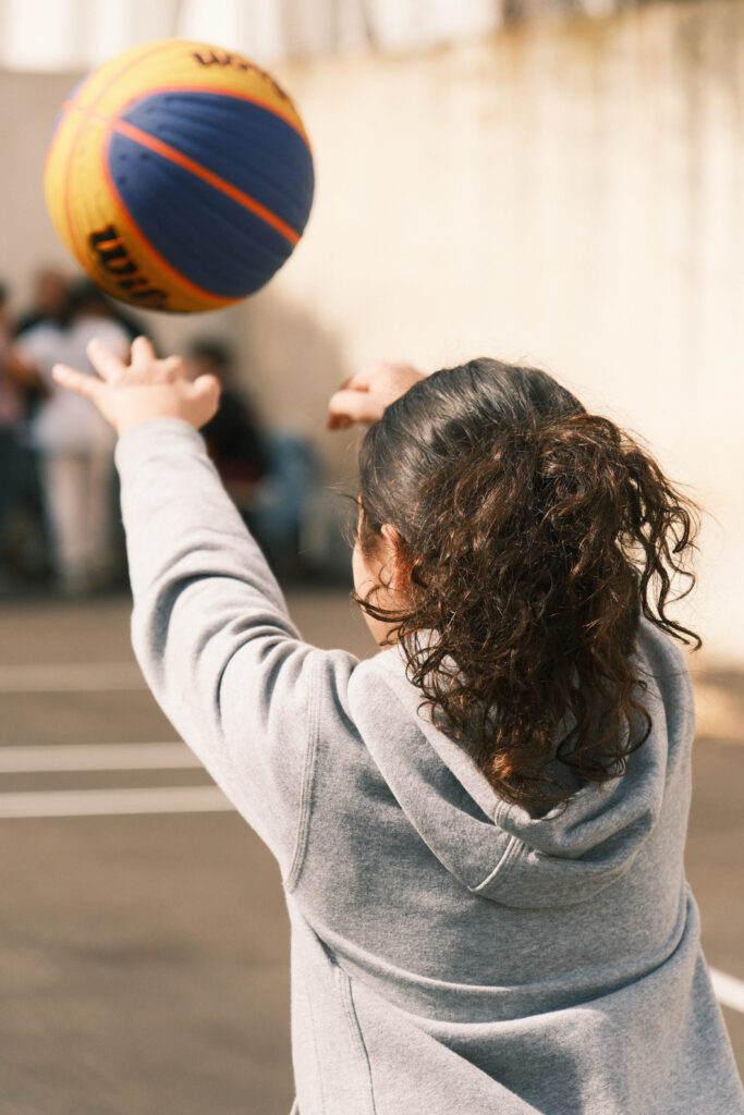 Tout au long de l’après-midi, les participantes ont pu profiter d’un double format mêlant pratique sportive et ateliers de réflexion. Côté terrain, trois espaces encadrés par des basketteur-euses professionnel-les proposaient des exercices autour du tir, de la passe et du dribble. Entre chaque temps sportif, les participantes rejoignaient un atelier de sensibilisation : un jeu autour des stéréotypes dans le sport animé par Balle en Main, un échange sur la place des femmes dans le sport avec Femmes de Sport, ainsi qu’un atelier sur la précarité menstruelle proposé par Règles Élémentaires